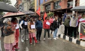 काठमाडौं । साम्राज्यवाद, प्रतिगमन र यथास्थितिको विरुद्ध आवाज उठाउँदै नेपाल कम्युनिस्ट पार्टी (बहुमत) सहित ११ वटा कम्युनिस्ट पार्टी र संगठनहरू सम्मिलित संयुक्त संघर्ष समिति नेपालले मंगलबार काठमाडौंको माइतीघर मण्डलामा संयुक्त विरोध प्रदर्शन सम्पन्न गरेको छ । प्रतिकूल मौसमका बाबजुद पनि उल्लेख्य सहभागिता रहेको सो कार्यक्रम “साम्राज्यवाद, प्रतिगमन र यथास्थितिको प्रतिरोध गरौं ! राष्ट्रिय स्वाधीनता, सार्वभौमसत्ता र अग्रगामी राजनीतिक निकासका लागि एकजुट होऔं !” भन्ने नारासहित सम्पन्न भएको थियो ।