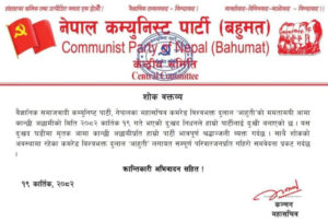 काठमाडौं । वैज्ञानिक समाजवादी कम्युनिस्ट पार्टी, नेपालका महासचिव कमरेड विश्वभक्त दुलाल ‘आहुती’ की ममतामयी आमा कान्छी अछामीको मिति २०८२ साल कात्तिक १९ गते निधन भएको छ । उहाँको निधनप्रति नेपाल कम्युनिस्ट पार्टी (बहुमत) ले गहिरो शोक व्यक्त गरेको छ ।