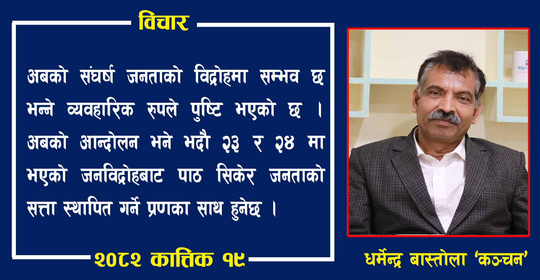 काठमाडौंमा संयुक्त संघर्ष समितिको विरोध प्रदर्शन : राष्ट्रिय स्वाधीनता र अग्रगामी निकासका पक्षमा एकजुटताको आह्वान सबै पढ्नुहोस् »